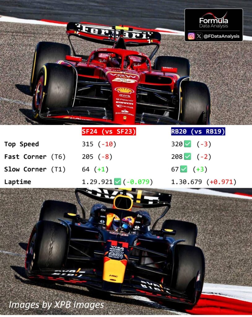 RB20’s top speed and cornering speeds were higher; yet, SF24 produced an overall quicker lap