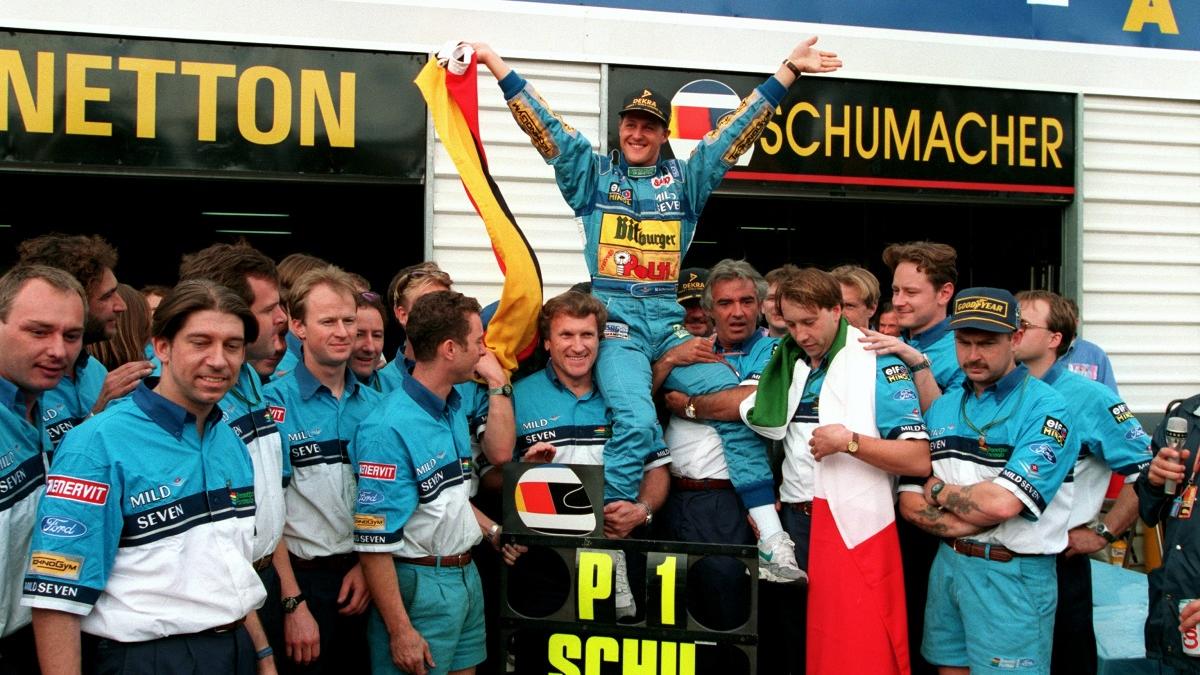 Well, Schumacher’s first win in 1994 at the Australian Grand Prix had its drama too. He bumped into Damon Hill, and they both had to bow out. But with neither of them earning any more points, Schumacher won the title by a single point.